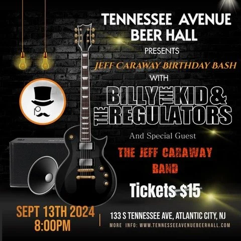 Come ROCK out with Billy the Kid and the Regulators while Celebrating Jeff Caraway's Birthday. Opening act is The Jeff Caraway Band.